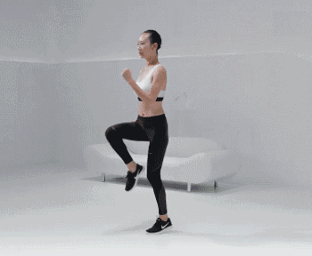 高抬腿跑步一分钟后休息三十秒再继续原地跑步一分钟。