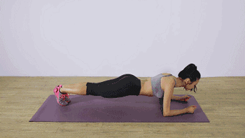直臂俯卧撑姿势,收紧腹部。