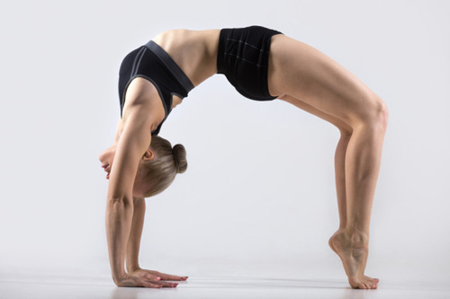 眼睛看向前方,挺直上半身,收紧腹部和臀部。